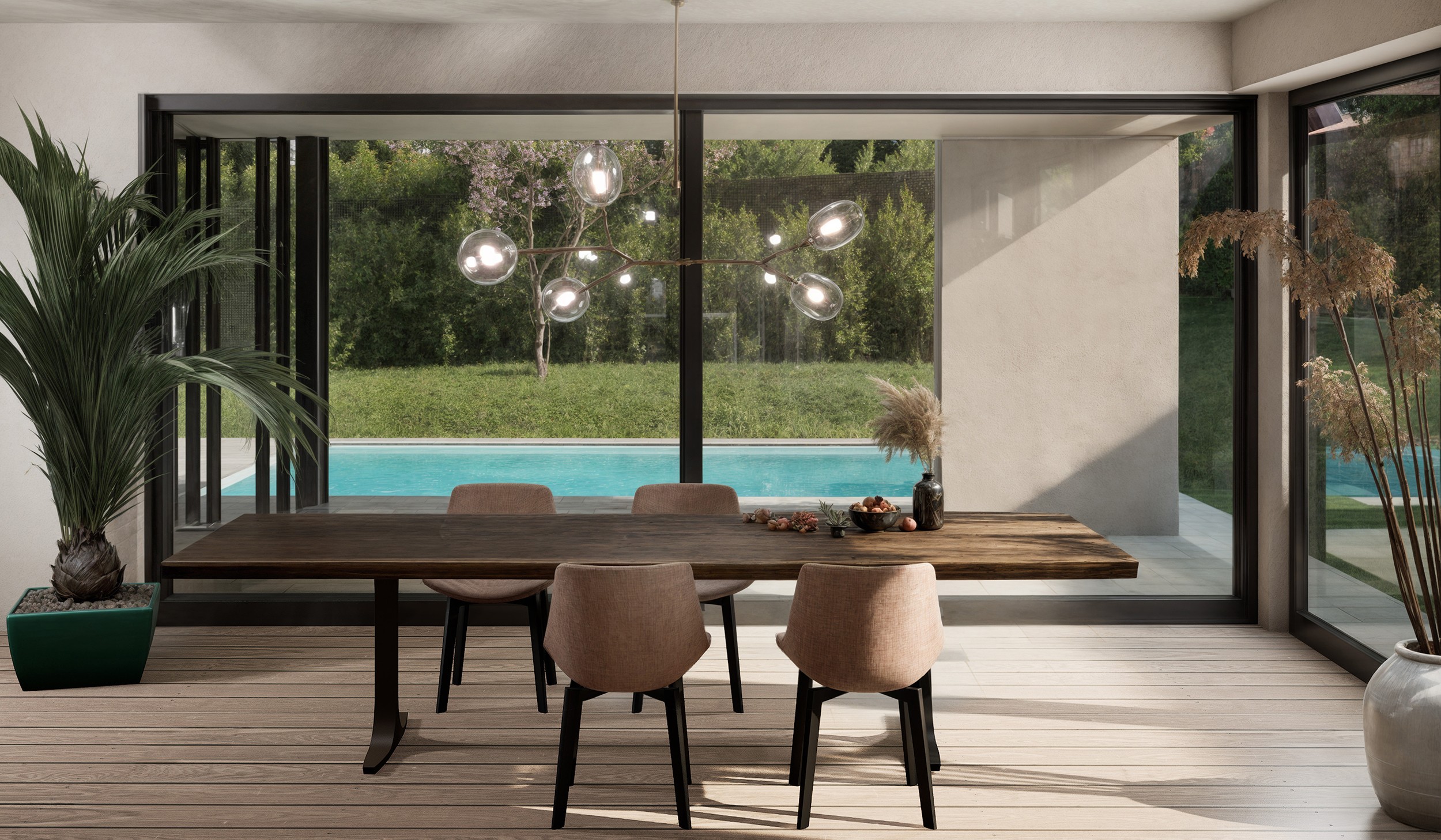 I frangisole in legno naturale, che avvolgono il loggiato coperto e delimitano il portico che si affaccia sulla piscina, oltre ad offrire una raffinata scelta di design migliorano significativamente le prestazioni energetiche della tua casa, garantendo protezione dai raggi solari e comfort termico.