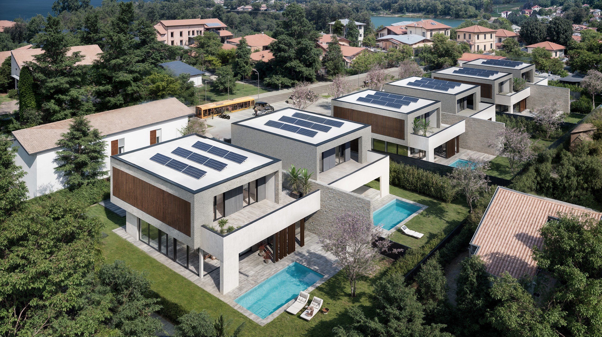 Grazie ai pannelli solari che soddisfano il 45% del fabbisogno energetico di ogni villa, potrai vivere con la consapevolezza di ridurre l’impatto ambientale.